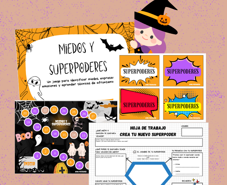 Diseñado para que niños y adolescentes exploren sus miedos de manera simbólica, mientras descubren recursos prácticos para gestionarlos. Este recurso incluye herramientas que ayudan a desarrollar habilidades emocionales  y estrategias de afrontamiento para manejar los miedos y fortalecer la confianza.