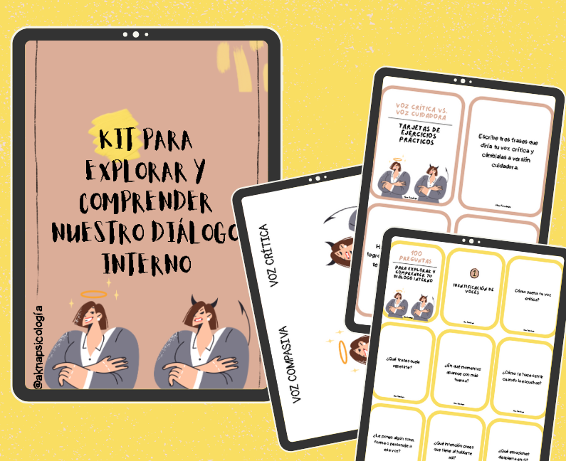 Un recurso práctico en formato de 100 tarjetas con preguntas, ejercicios y una dinámica guiada para trabajar el diálogo interno. Incluye reflexiones para identificar tu voz crítica, dar espacio a tu voz compasiva y aprender a equilibrarlas en el día a día. Ideal para uso personal o en terapia.